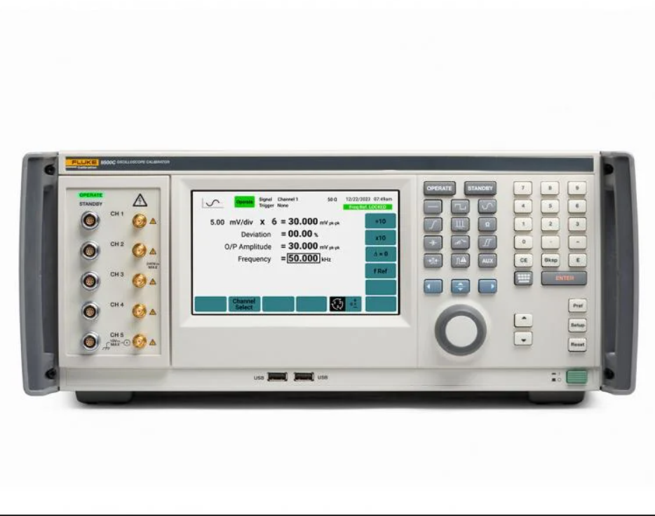 Fluke 9500C 是一款高性能商用示波器多通道全自动校准系统,核心搭配 9540C 有源信号头,以 4GHz 稳幅正弦波输出、70ps 高速脉冲边沿等特性,树立示波器校准效率与精度新标杆,适配多通道、高性能示波器的全场景校准需求,以下是核心信息梳理: